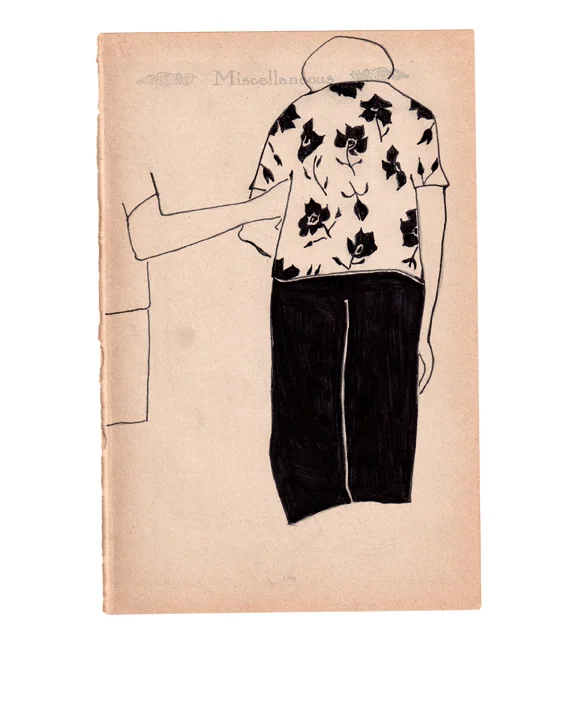 I was gifted a little black book from the 1940's. It was entirely blank. I decided to keep the meaning of the “little black book” in mind (secret records, clandestine rendezvous, amorous possibilities, etc.) and began filling its pages with intimate drawings.